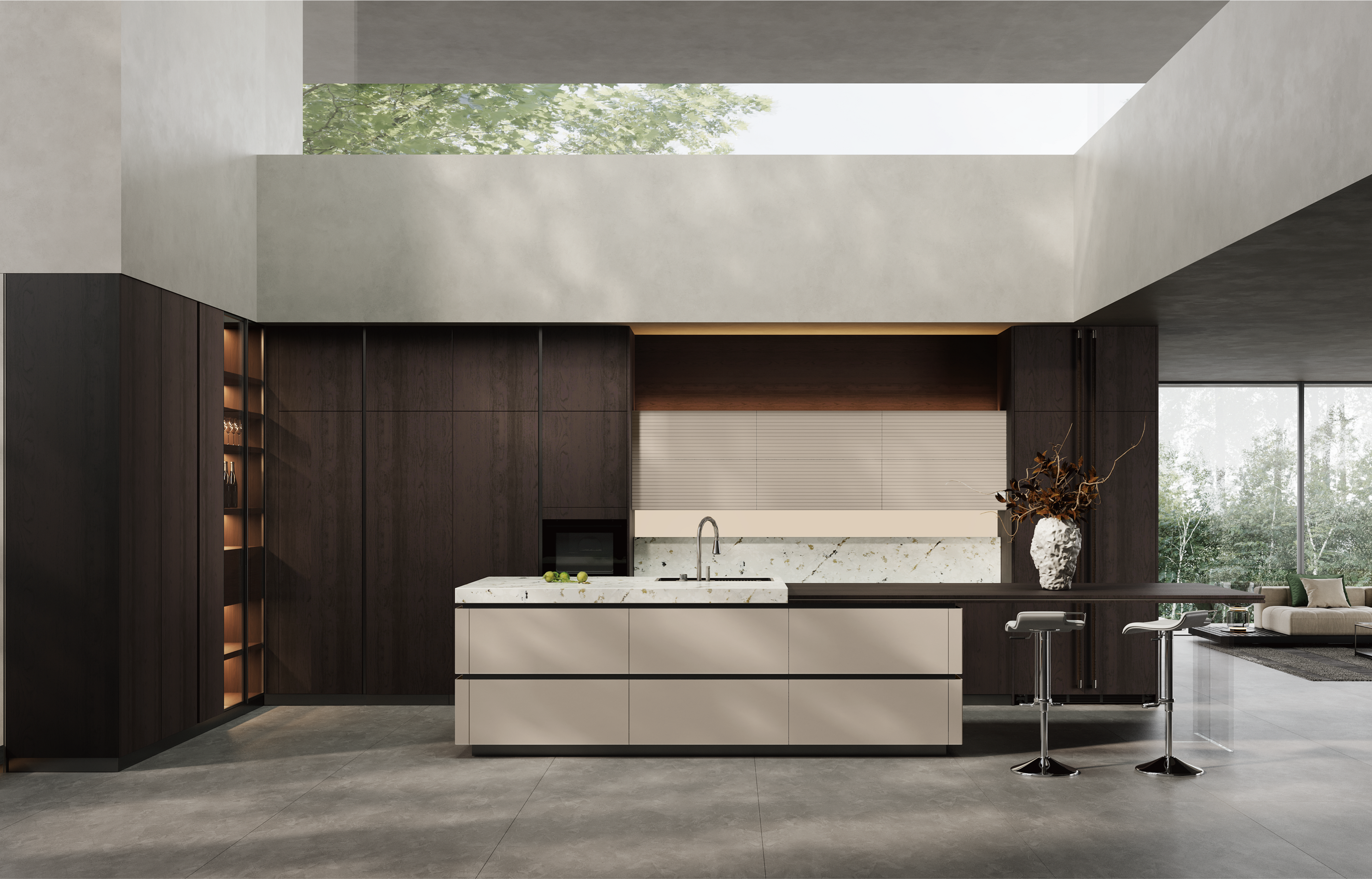 通过PG电子厨柜量体裁柜,定制出适合主厨下厨的烹饪区和洗涤区的舒适高度。